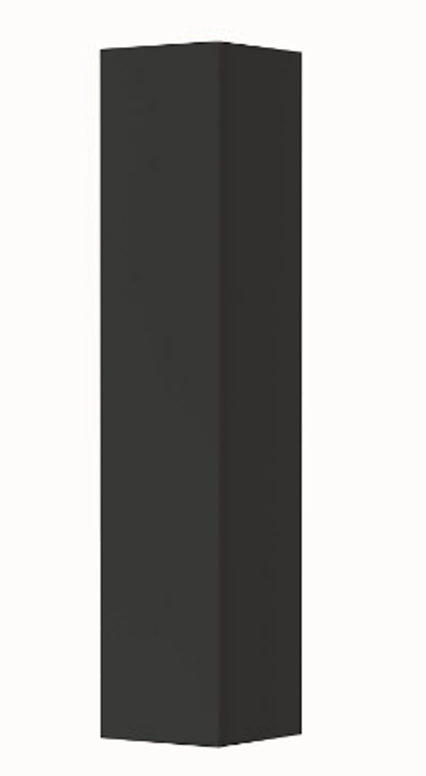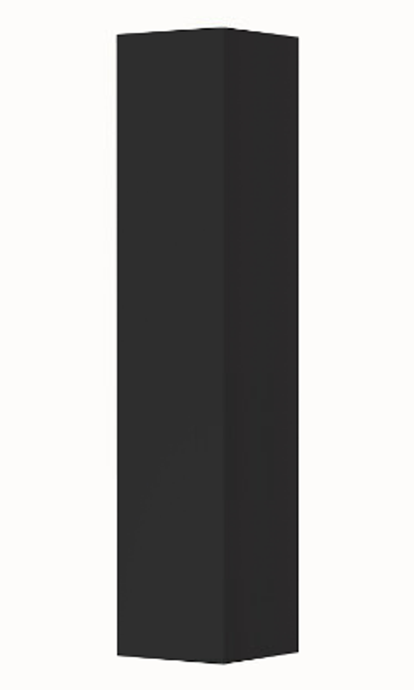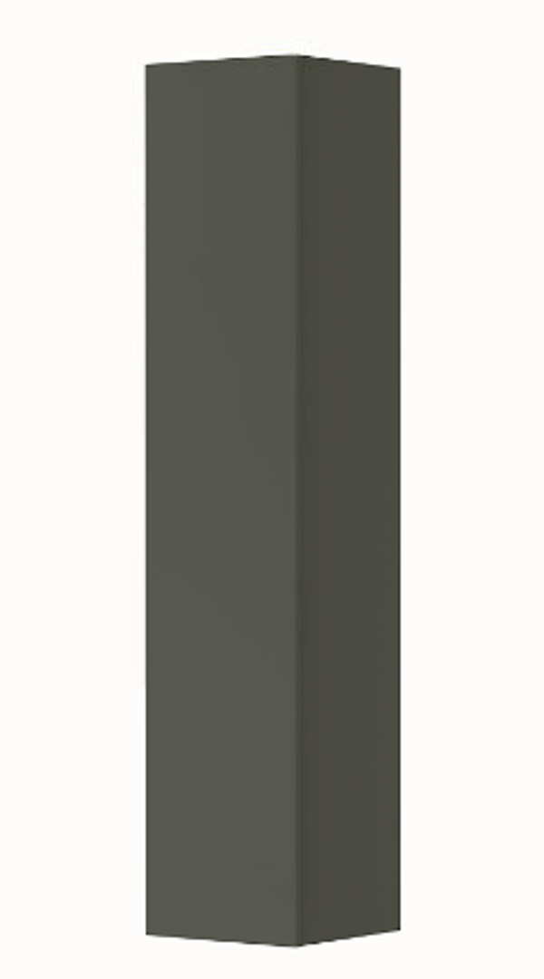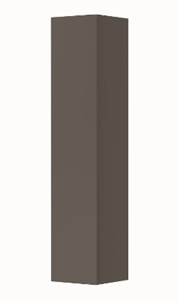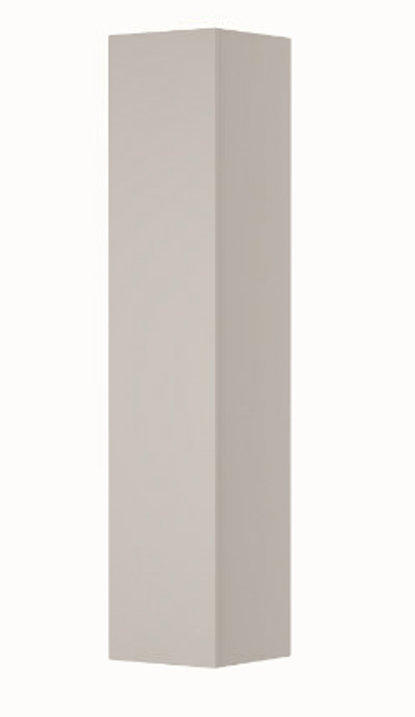 Hoge kast met 1 greeploze deur, 5 vakken en glazen planchetten, uit te breiden met een uittrekbare wasmand, wat ten koste gaat van 1 planchet.