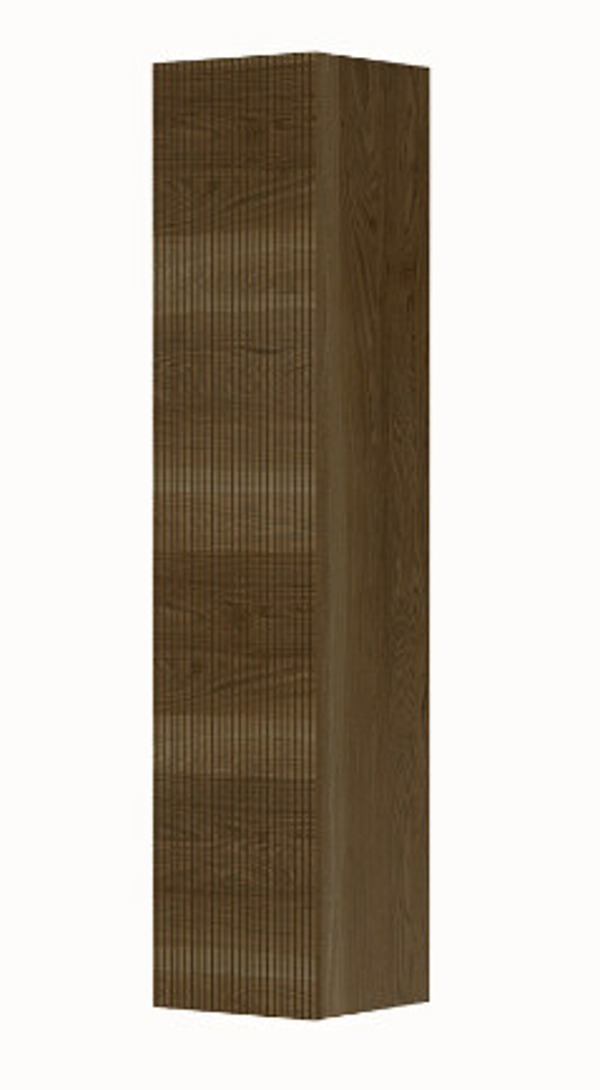 Hoge kast met 1 greeploze deur, 5 vakken en glazen planchetten, uit te breiden met een uittrekbare wasmand, wat ten koste gaat van 1 planchet.