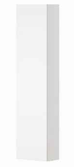 Hoge, universele kast, 20 cm diep, met 1 greeploze deur en een spiegel aan de binnenzijde, voorzien van 5 vakken en glazen planchetten, met een gelakte buitenzijde.