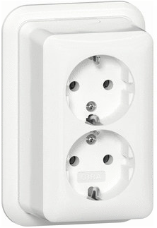 Gira Opbouw wandcontactdoos (wcd schakelmat.), wit, uitvoering overig, aardcontact overig, 2 eenheden, 1 modules (bij modulair sys, 1 fasen, aansluitwijze steekklem, RAL-nummer 9010, geïsoleerde montage